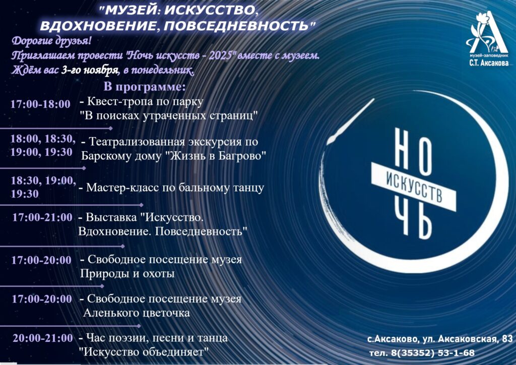 Музей-заповедник писателя С. Т. Аксакова в Бугурусланском районе третьего ноября присоединится к ежегодной акции «Ночь искусств».