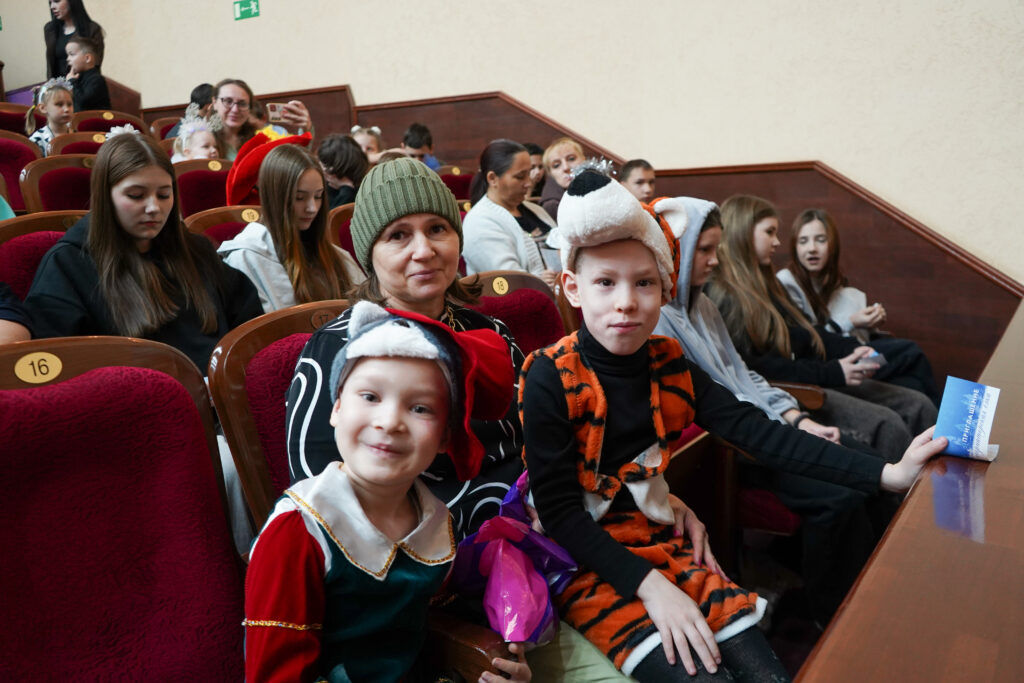В драматическом театре имени Н. В. Гоголя собрались ребята из нескольких территорий: из многодетных семей, с ограниченными возможностями здоровья, воспитанники интернатных учреждений, дети военнослужащих, участвующих в СВО. Дети посмотрели видеообращение губернатора Оренбуржья Евгения Солнцева.