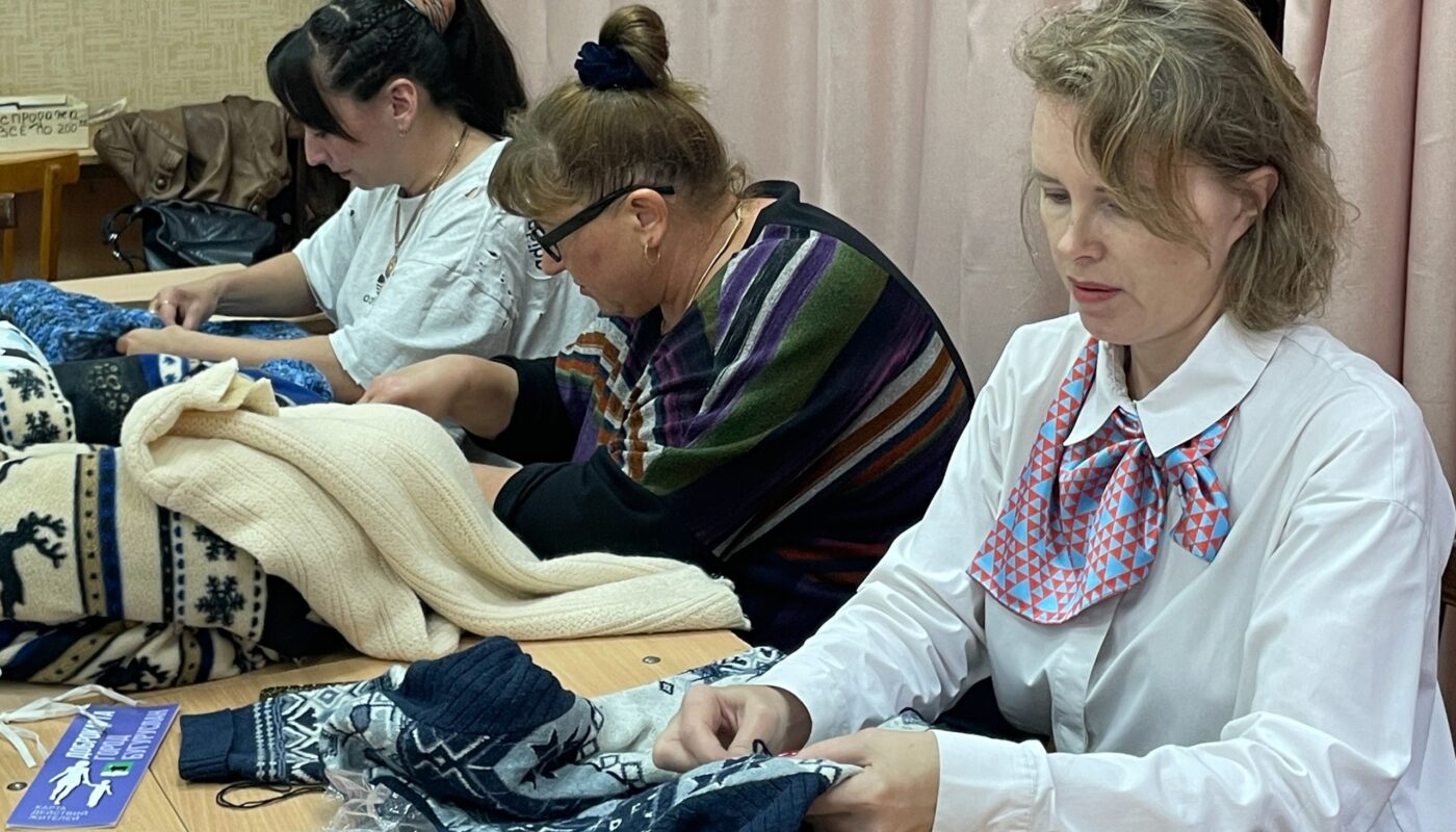 На встрече сшили тринадцать мягких лежанок для бездомышей. Материалом для уютных подстилок послужили старые свитеры.