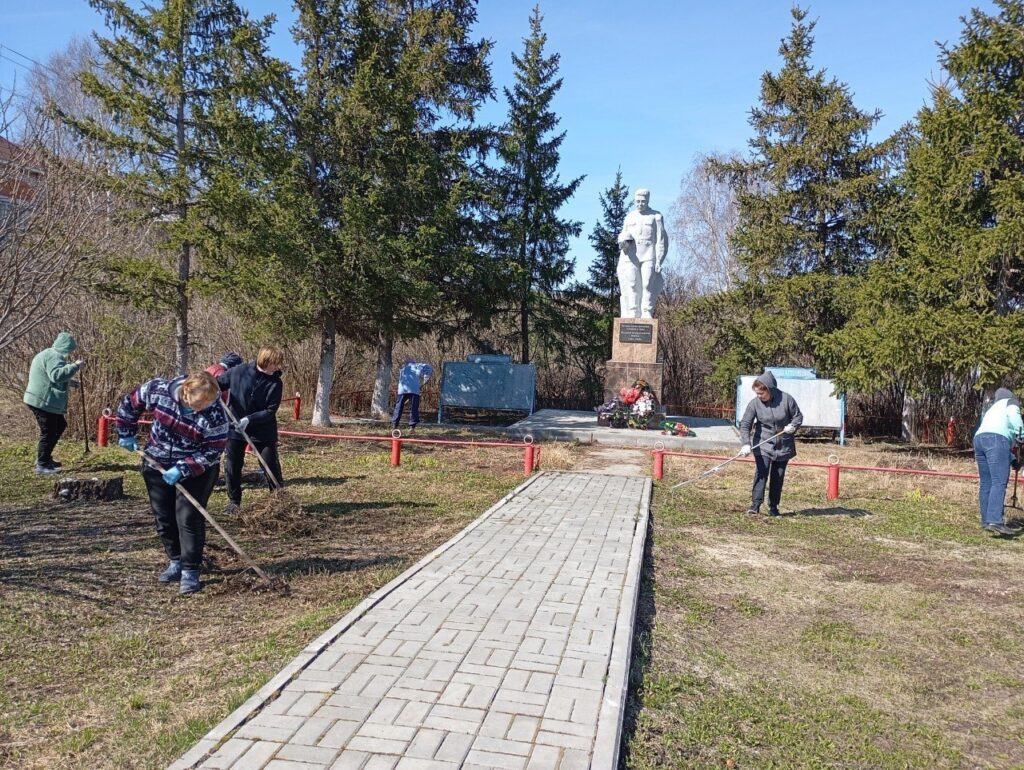 Коллективы администрации, СДК, библиотеки и ФАПа Советского сельсовета провели субботники возле памятника «Солдат освободитель».