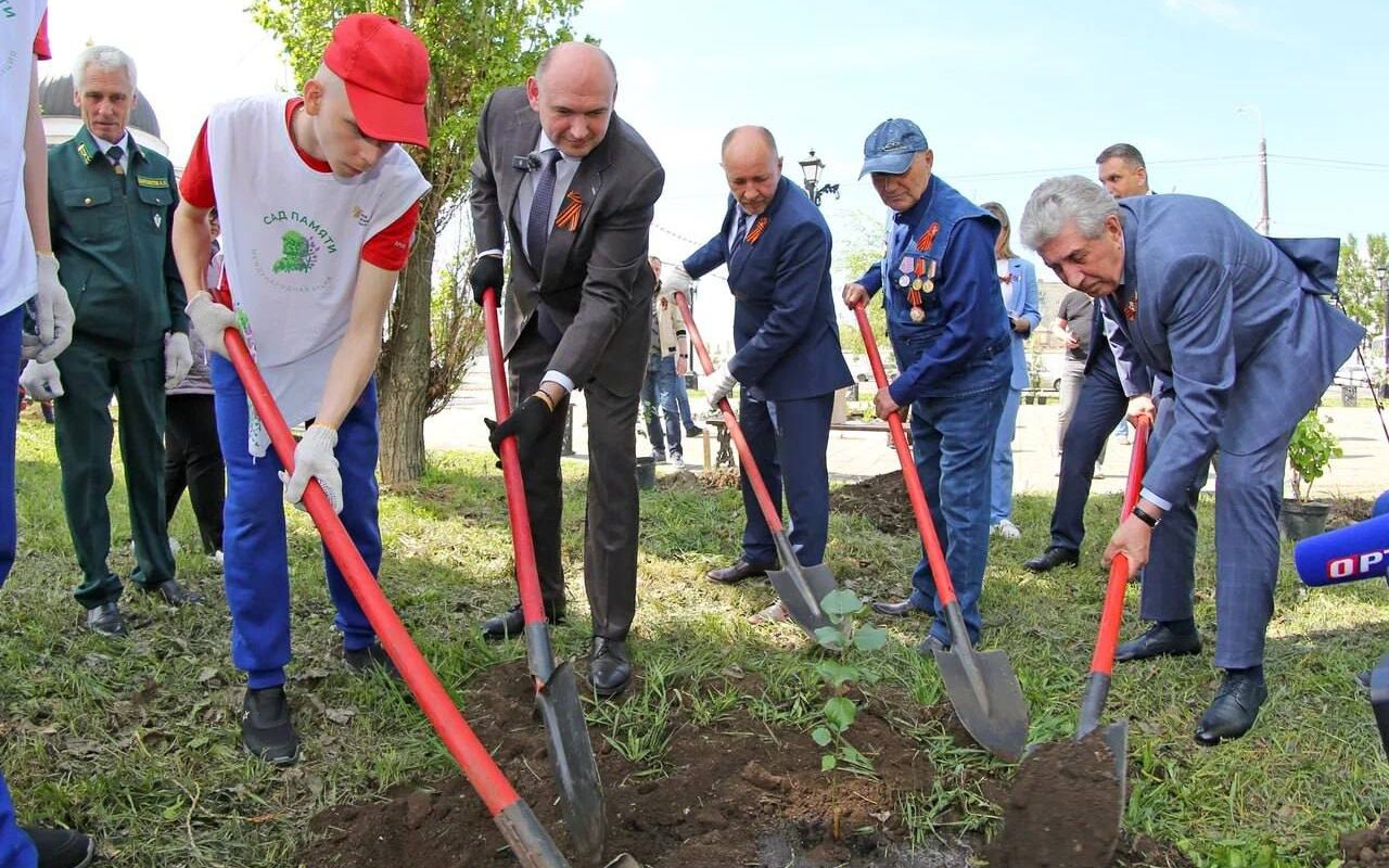 В сквере около Дома Памяти на проспекте Победы в Оренбурге прошло центральное мероприятие акции «Сад памяти». В нем принял участие врио губернатора области Евгений Солнцев.