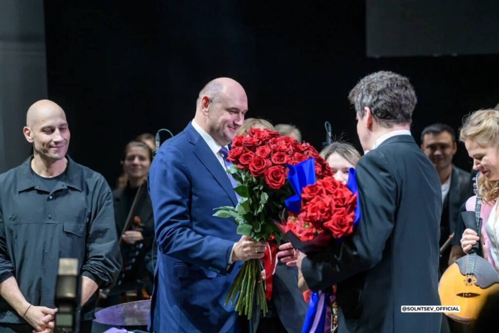Потом на сцену вышел Оренбургский государственный симфонический оркестр. Также выступили солисты — лауреаты международных конкурсов Елена Таросян (скрипка), Борислав Струлёв (виолончель), Елизавета Гамарис (кларнет), Дени Кохановский (фортепиано), народный артист России Денис Мацуев (фортепиано).